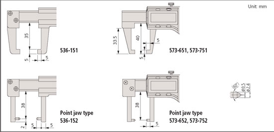 573-752-20 - Metric, Inch 0-150mm / 0-6" 0.01mm / 0.0005" ±0.0015" Point-jaw type