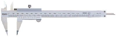 The Mitutoyo Vernier Point Caliper features jaws with narrow tips to attain difficult outside measurements with high accuracy. The narrow-tipped jaws are capable of measuring inside very small grooves and tracks. The point caliper is constructed of hardened stainless steel with a satin chrome finish for protection and easier reading.