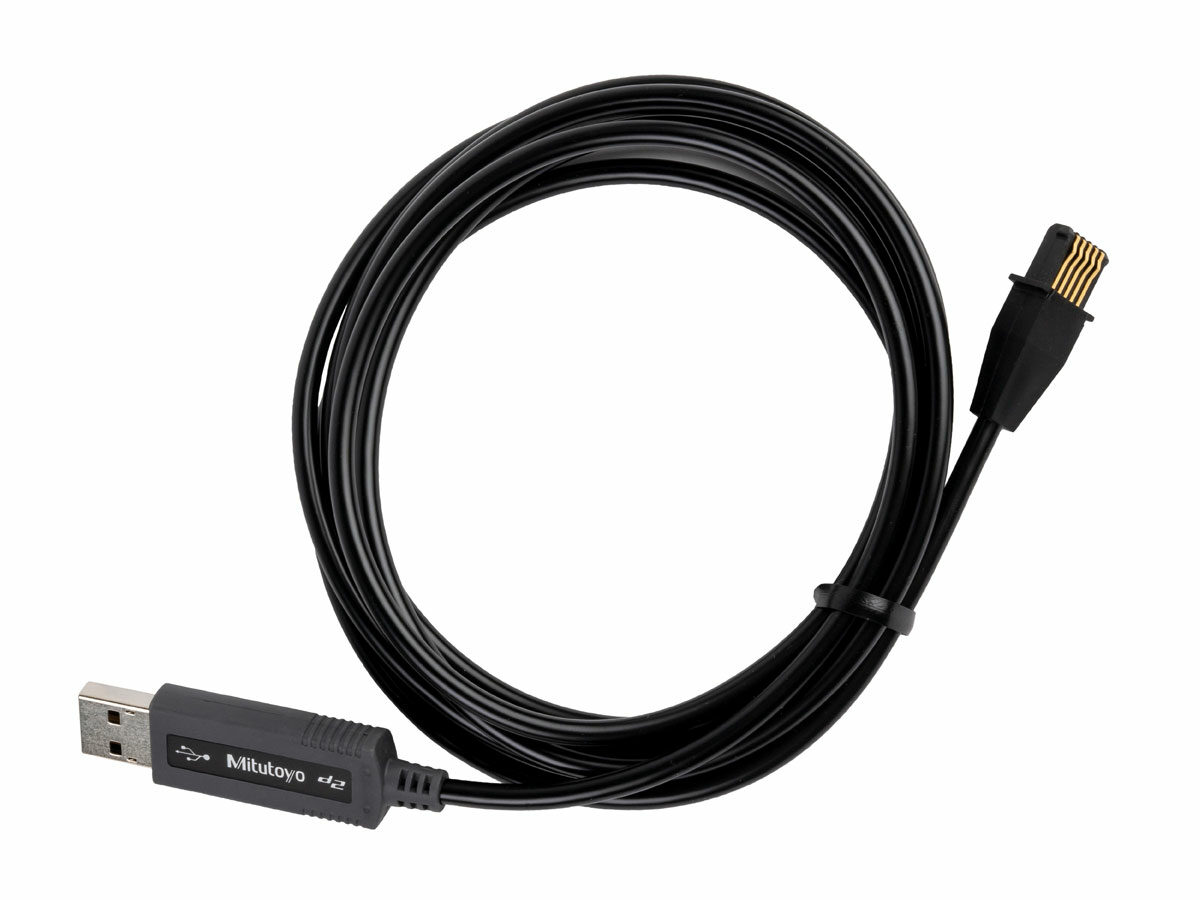 Mitutoyo USB direct cables connect SPC-output-enabled digital Mitutoyo micrometers, calipers, indicators and height gages directly to a PC. These single-piece cables are slim with smooth routing for improved workability.