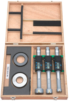 The Mitutoyo Digimatic Holtest internal micrometer utilizes three anvils and contact points for self-centering, precision measurements of the inside dimensions of bores.