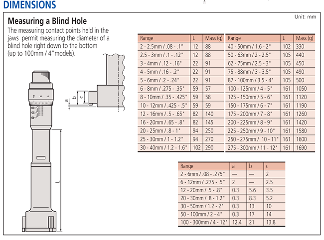 The Mitutoyo Holtest mechanical three-point internal micrometer utilizes three self-centering anvils with precision contact points for accurate and efficient measurements of inside dimensions of bores.