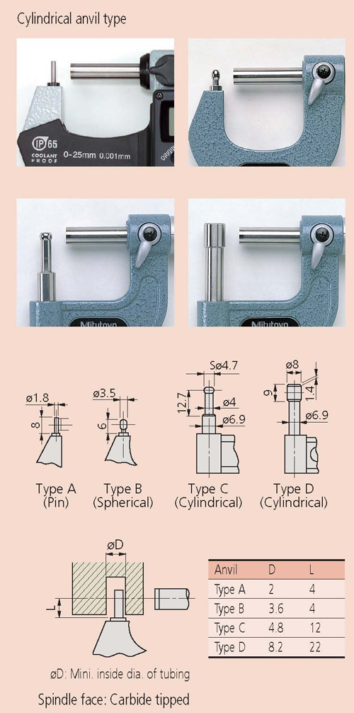 - Available with pin, spherical and cylindrical anvils